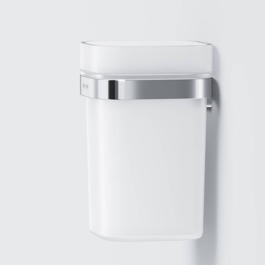 Для ценителей функционального использования пространства ванной комнаты созДан настенный стакан для хранения Func. Этот незаменимый аксессуар выполнен из сплава металлов и лаконичного матового стекла.