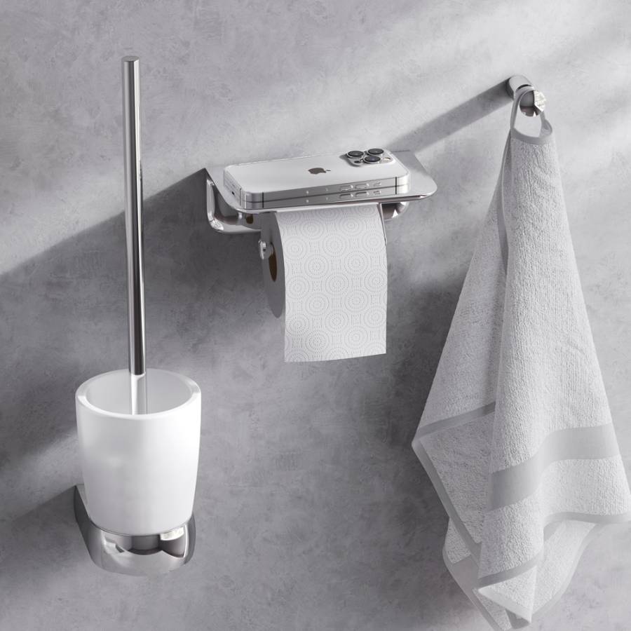 Занимая минимум места аксессуары Sensation помогут рационально организовать пространство и станут стильными акцентами в интерьере. В комплекте: крючок для полотенец держатель для туалетной бумаги с полкой стойка с туалетной щеткой. _x000D_