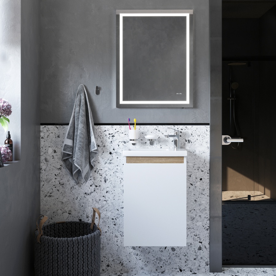 Смеситель спроектирован для использования на раковинах небольшого размера. В нем установлена собственная разработка бренДа - керамический картридж Soft Motion 35мм. Набор из двух крючков для полотенец ставит финальный аккорд в этом наборе. Цельнолитая база фиксируется в двух точках крепления для надёжности.