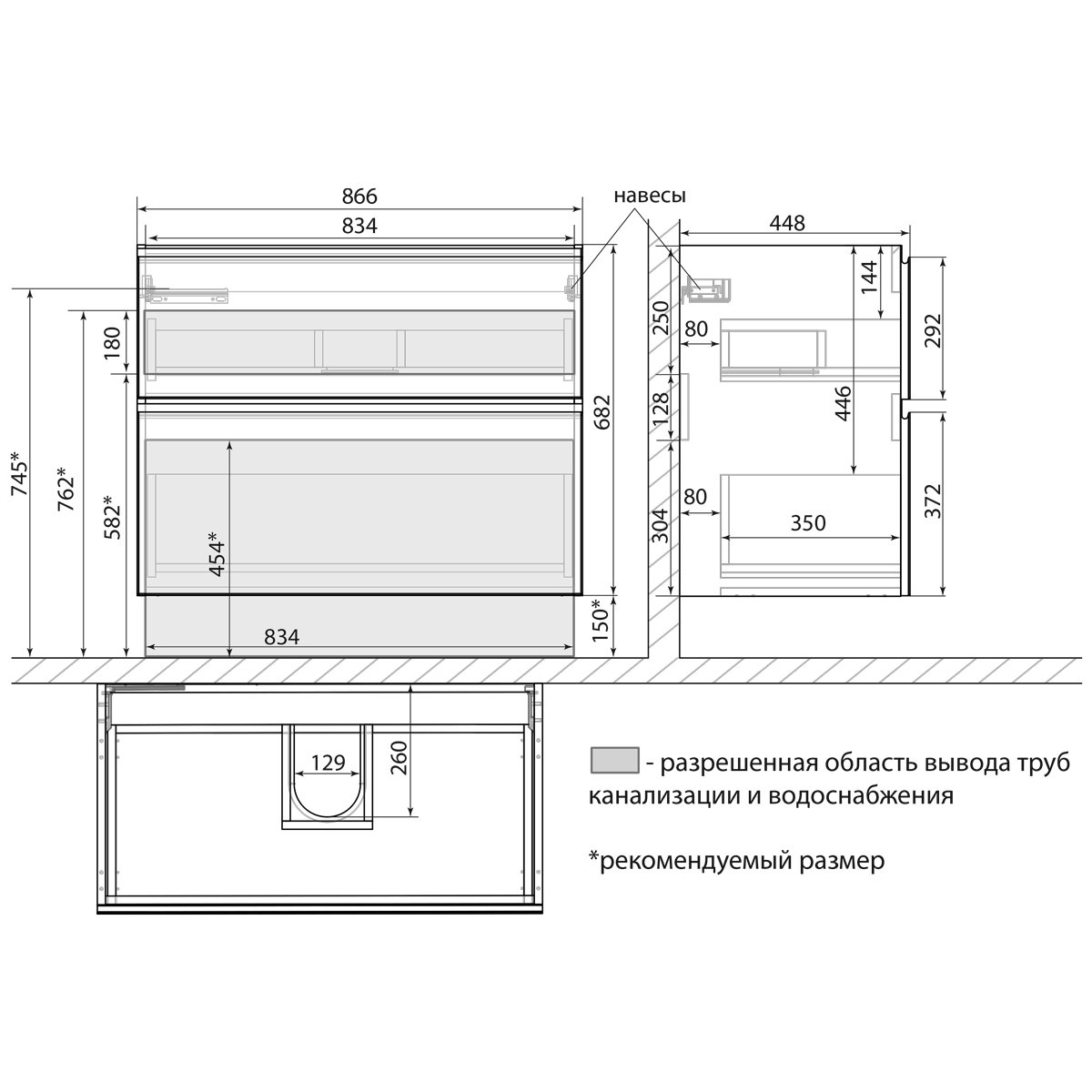 •Габариты без раковины (ШГВ): 866х448х682 мм;