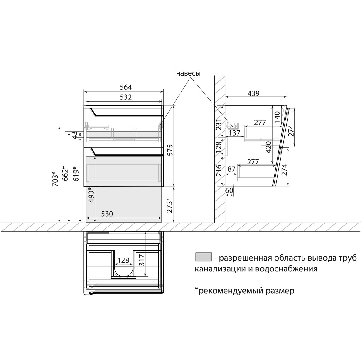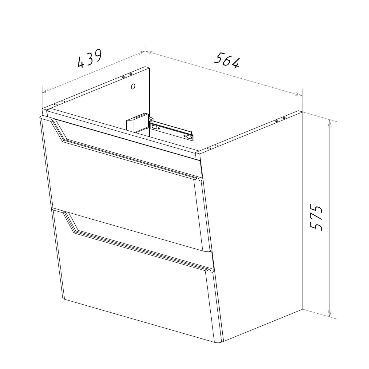 •Габариты без раковины (ШГВ): 564х439х575 мм;