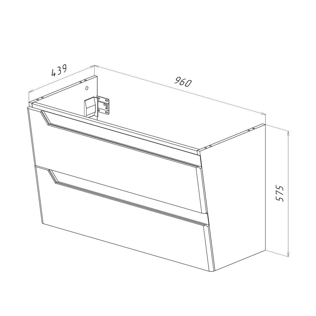 •Габариты без раковины (ШГВ): 960х439х575 мм;