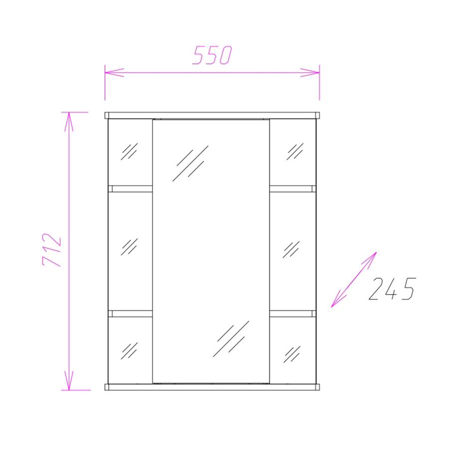 Корпус шкафа-зеркала выполнен из ЛДСП, фасад - из ЛДСП и ЛМДФ в пленке, устойчивых к механическим воздействиям, перепадам температур и высокой влажности.