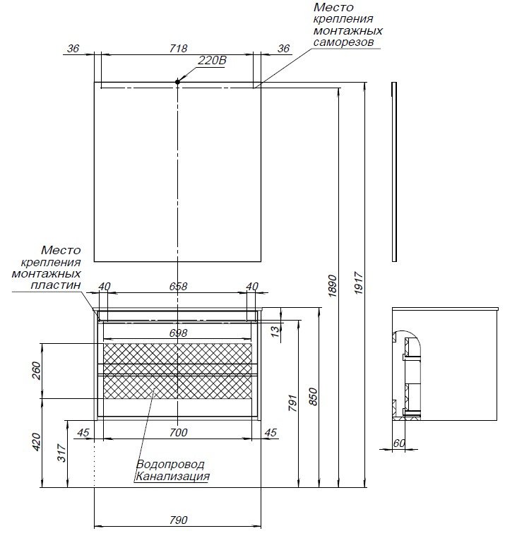 У нее удобная зона хранения: два выдвижных ящика, оборудованных доводчиками, словно утоплены внутрь корпуса. Тонкие изящные ручки во всю ширину ящиков. Именно они находятся в одной плоскости с боковыми стенками. Выглядит стильно. К тому же, безопасно, так как нет выступающих деталей. Кстати, ручки отечественного производства. Сделаны из алюминия, чтобы исключить возможность коррозии, по заказу Aquanet специально для этой коллекции. Сверху на них нанесено эмалевое покрытие. Корпус и фасады тумбы шириной 80 см – из влагостойкого ЛДСП.