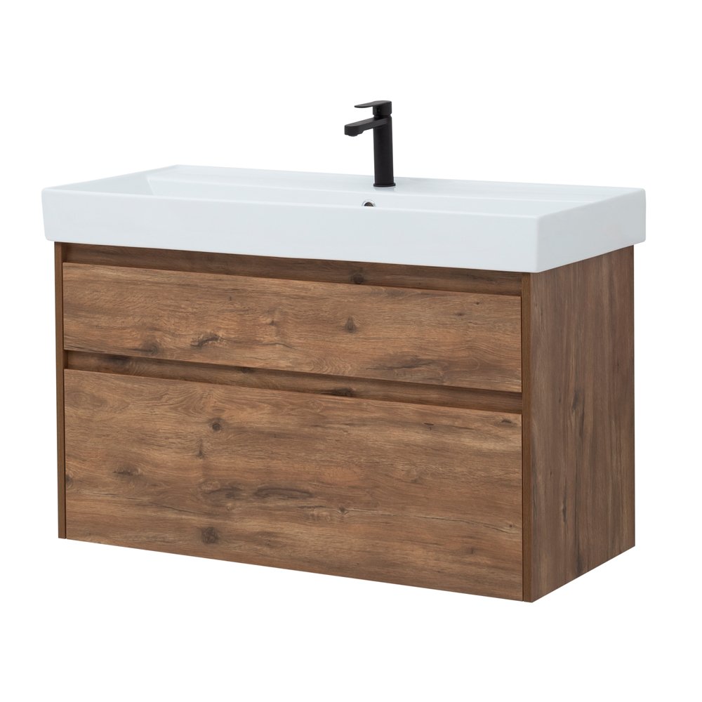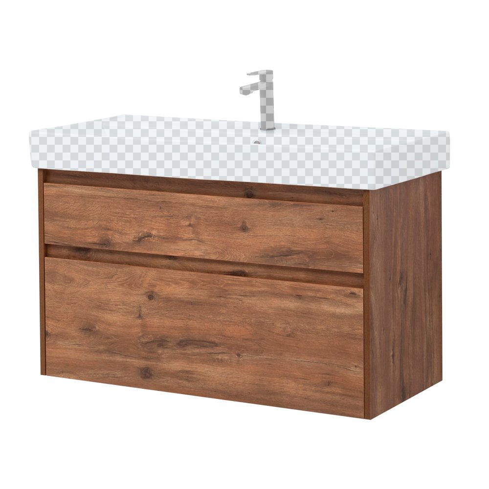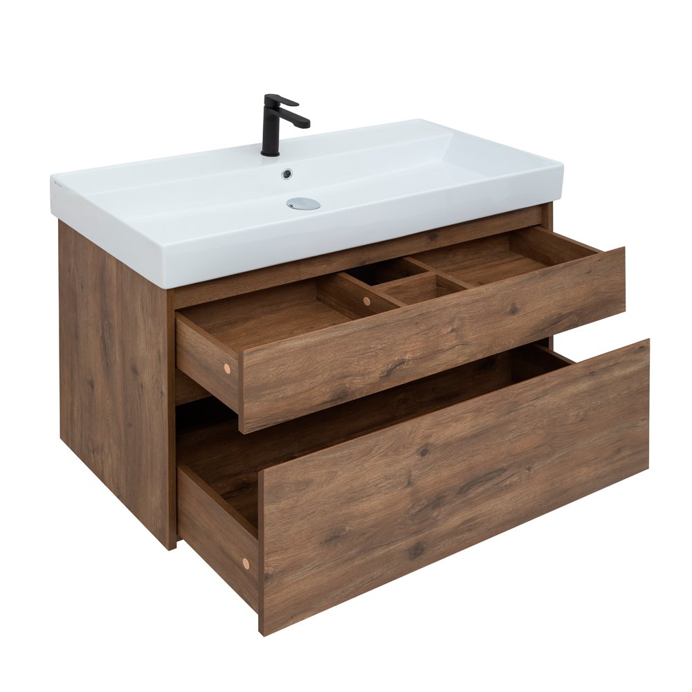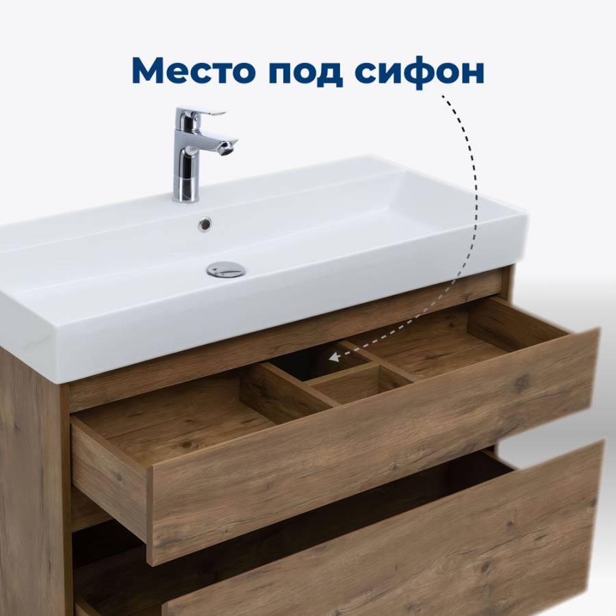 Подвесной монтаж придает визуальную легкость тумбе.