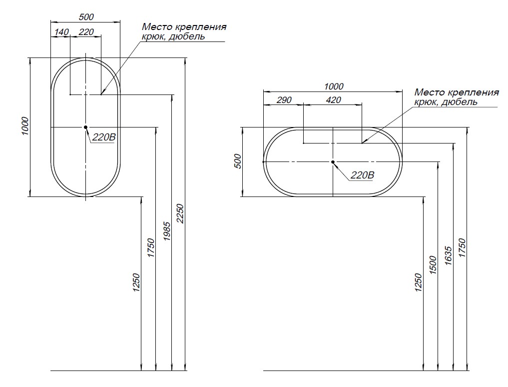 Антизапотевание; Подсветка; Сенсорный выключатель; Часы |