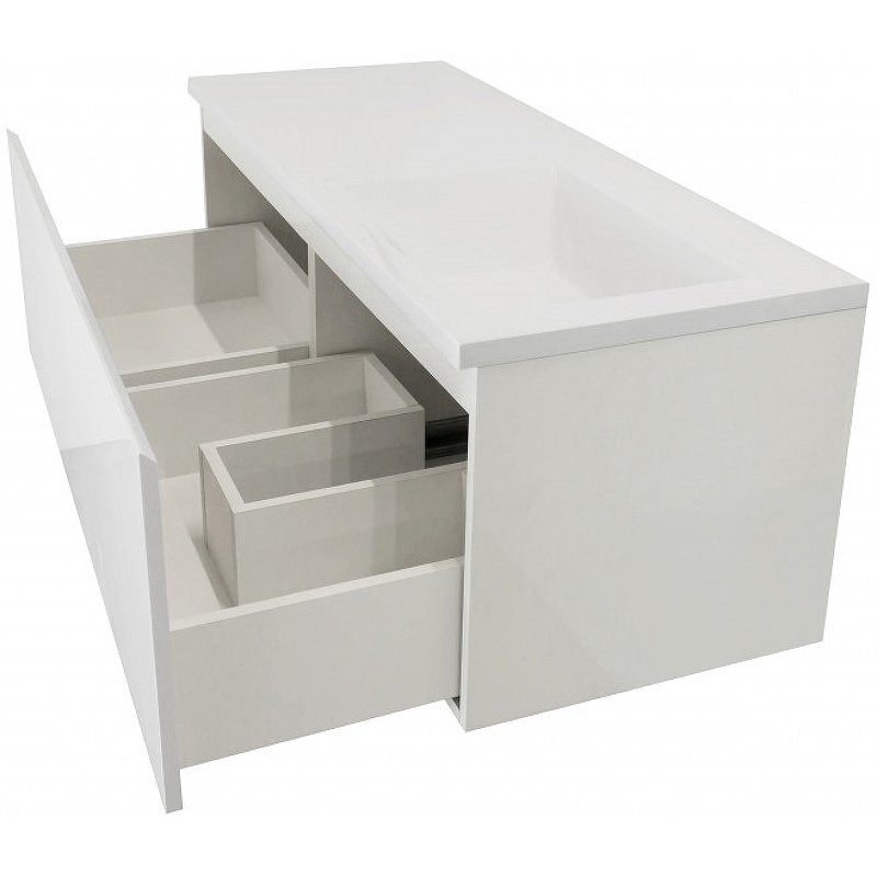 Мебель выполнена из влагостойкого ЛДСП и качественного MDF с использованием эмали RENNER (Италия). Ящики снабжены системой плавного закрывания. Для мебели используется фурнитура BLUM (Австрия)