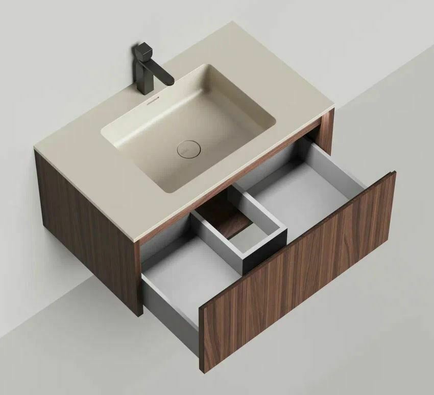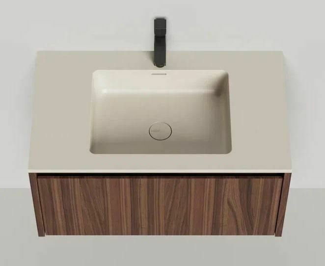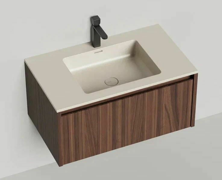 Тумба DOMINO, дополненная столешницей COSTA из каменного литья S-Stone, гарантирует практичность и простоту ухода.