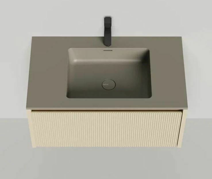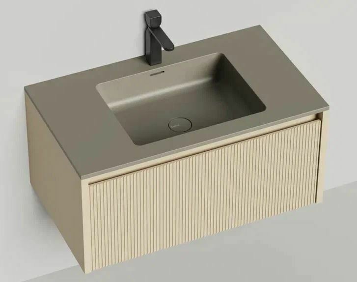 Тумба DOMINO, дополненная столешницей COSTA из каменного литья S-Stone, гарантирует практичность и простоту ухода.