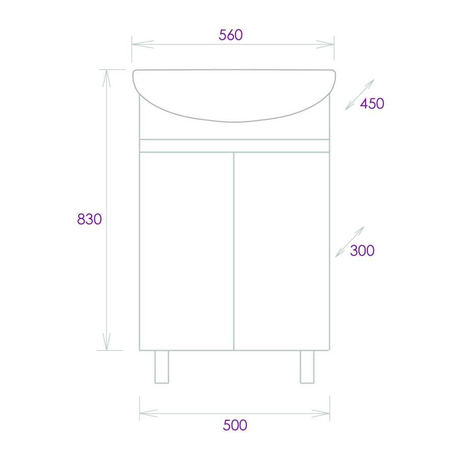 Размеры тумбы без учета раковины и ножек 50х30х68см.