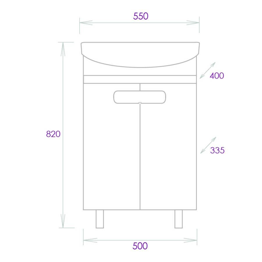 Размеры тумбы без учета раковины и ножек 50x33x68 cм.
