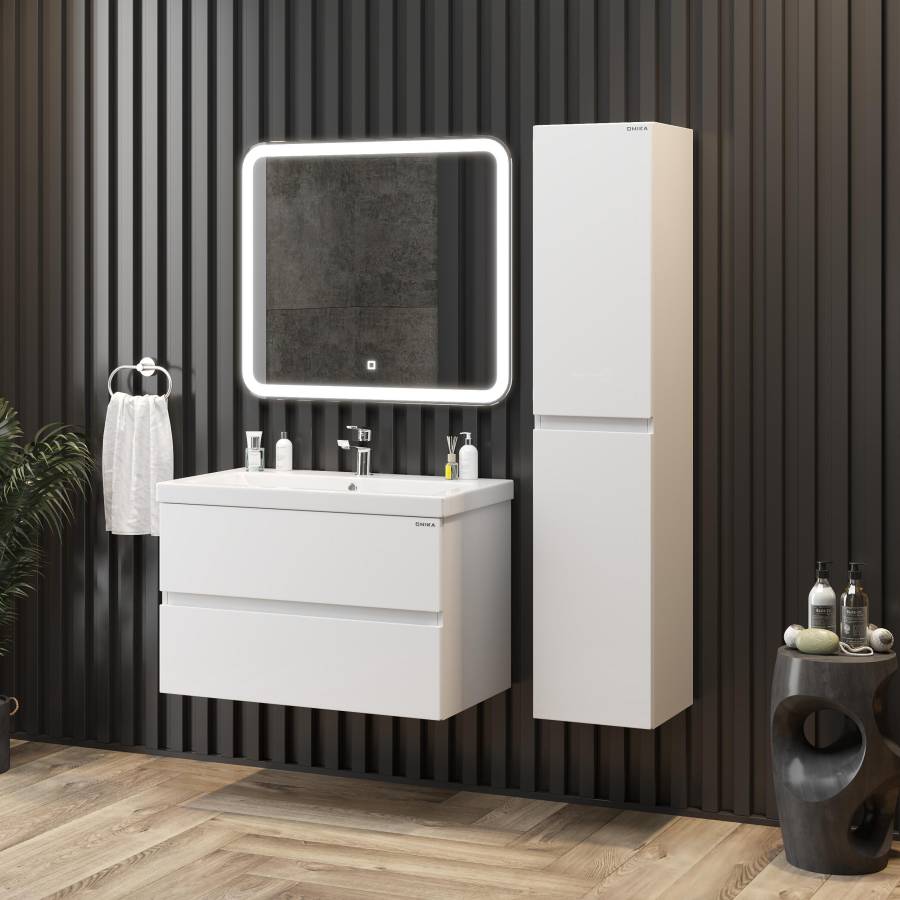 Тумба выполнена из ЛМДФ и ЛДСП, покрытых эмалью, устойчивой к механическим воздействиям, перепадам температур и высокой влажности.