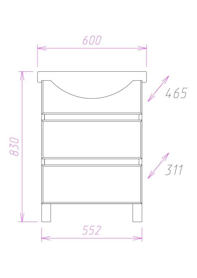 Размеры тумбы без учета раковины и ножек 55x31x68 cм.