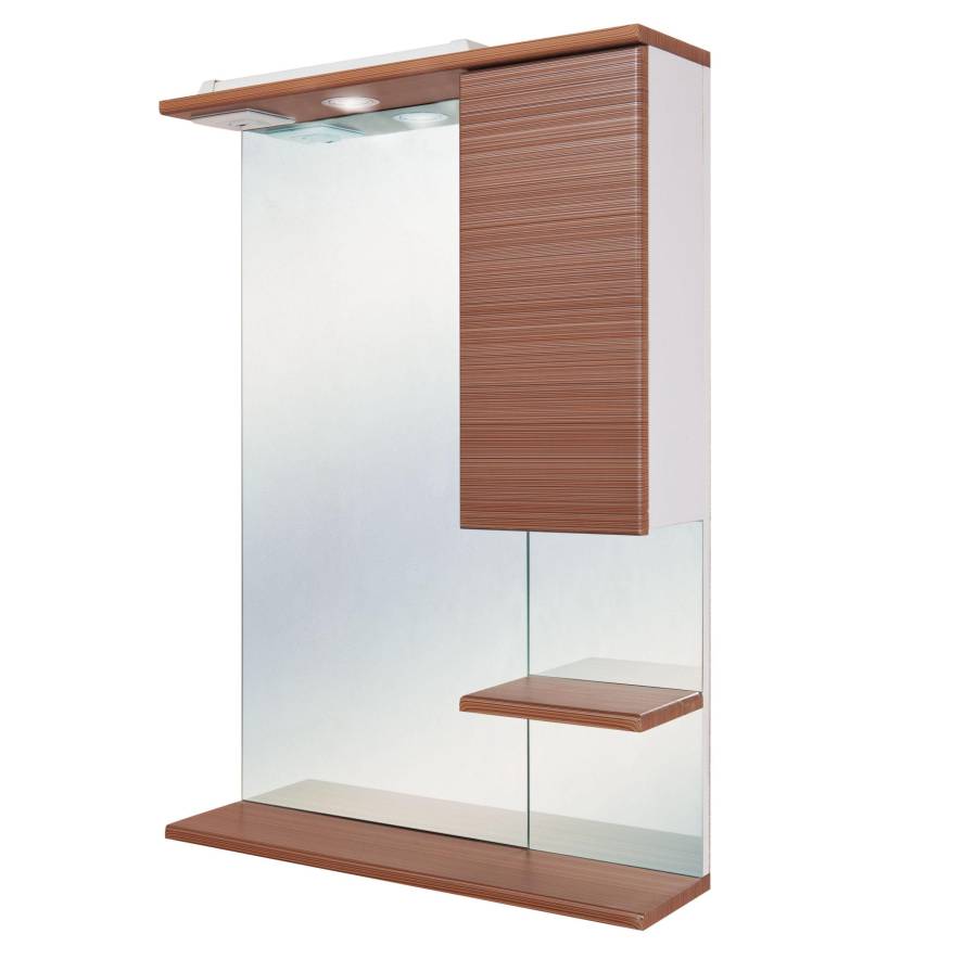 Корпус шкафа-зеркала выполнен из ЛДСП, фасад - из ЛМДФ в пленке, устойчивых к механическим воздействиям, перепадам температур и высокой влажности.
