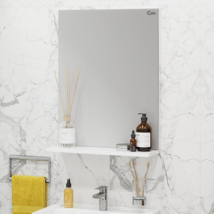Небольшая полочка под зеркалом может быть использована для размещения декора или часто используемых предметов.