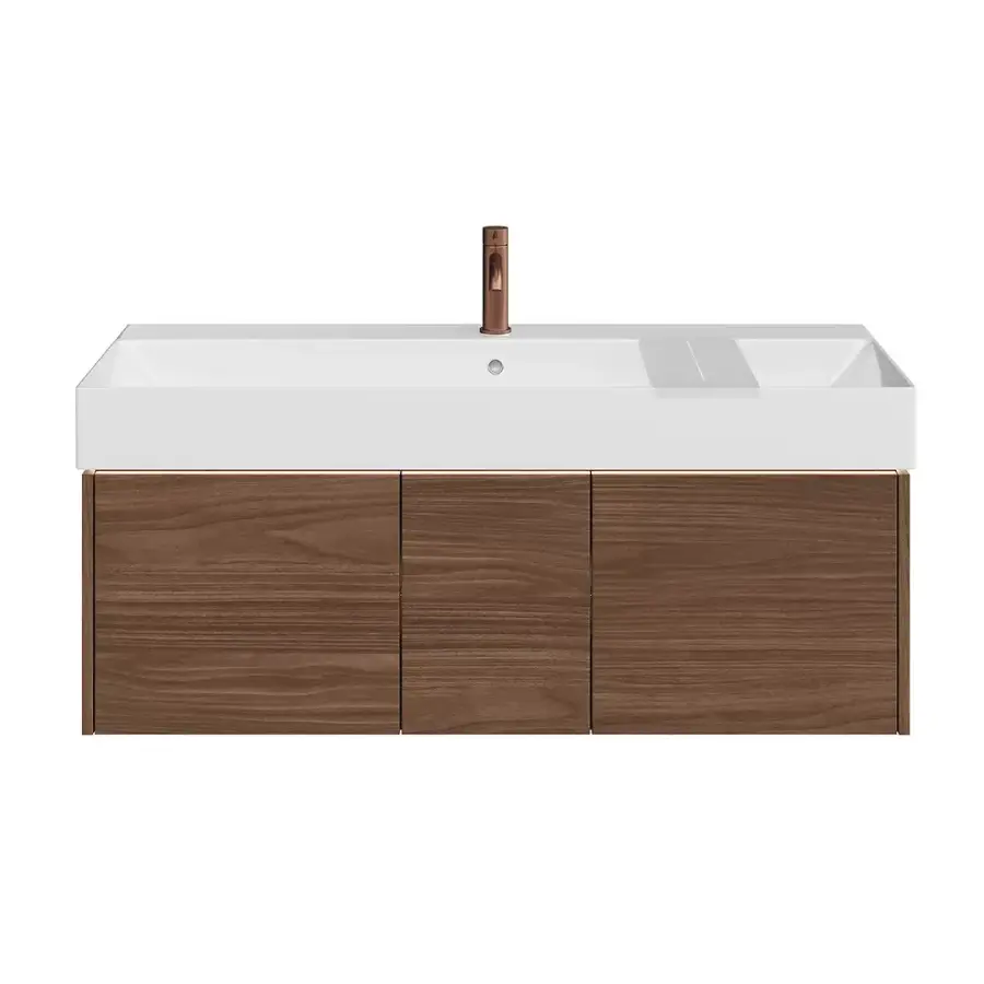 подсветка по периметру раковины и в среднем ящике, система push-to-open, внутренняя отделка ящиков Структурированный орех |