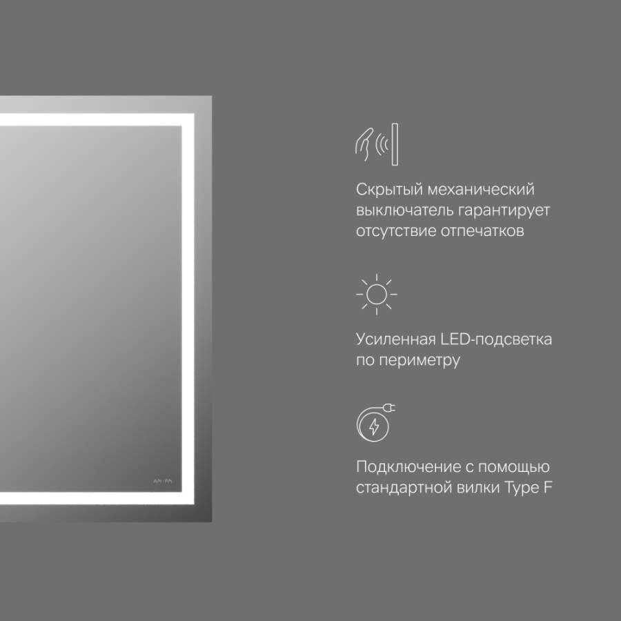 Данная модель выпускается с бесконтактным сенсорным выключателем Touchless – никаких отпечатков на зеркальном полотне! Свет включается легким взмахом руки. Функция диммирования позволяет регулировать яркость жестом._x000D_