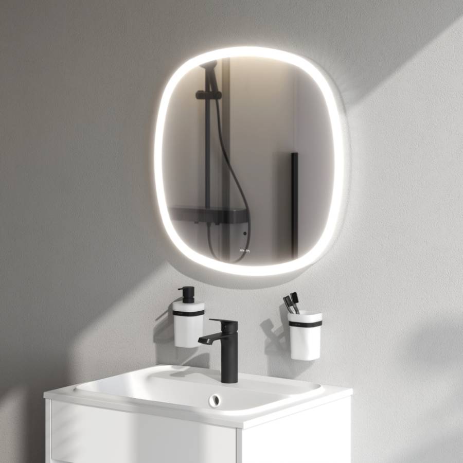 В качестве элемента LED-подсветки используется светодиодная лента которая создает мягкое и равномерное свечение по периметру всего зеркала. Управление подсветкой осуществляется при помощи бесконтактного сенсора. Сенсор нового поколения позволяет управлять включением/выключением и яркостью LED-подсветки без касания зеркального полотна. Зеркало дольше остается чистым._x000D_