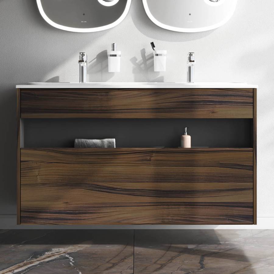 Удобный выдвижной ящик и вместительная открытая ниша позволяют хранить все необходимые средства под рукой. Невероятно мягкое открытие и закрытие благодаря направляющим скрытого монтажа с системой soft close._x000D_