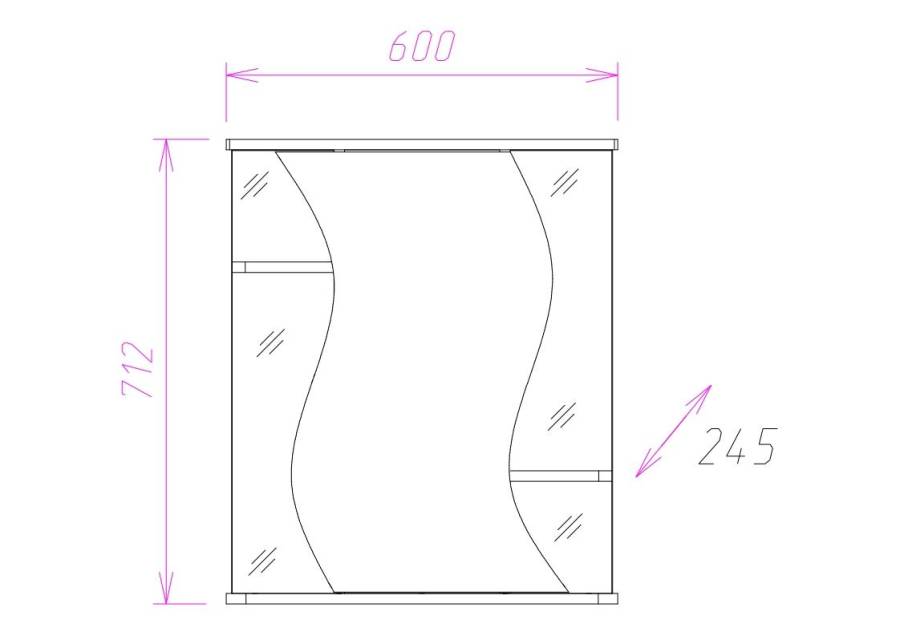 Корпус шкафа-зеркала выполнен из ЛДСП, фасад - из ЛДСП и ЛМДФ в пленке, устойчивых к механическим воздействиям, перепадам температур и высокой влажности.