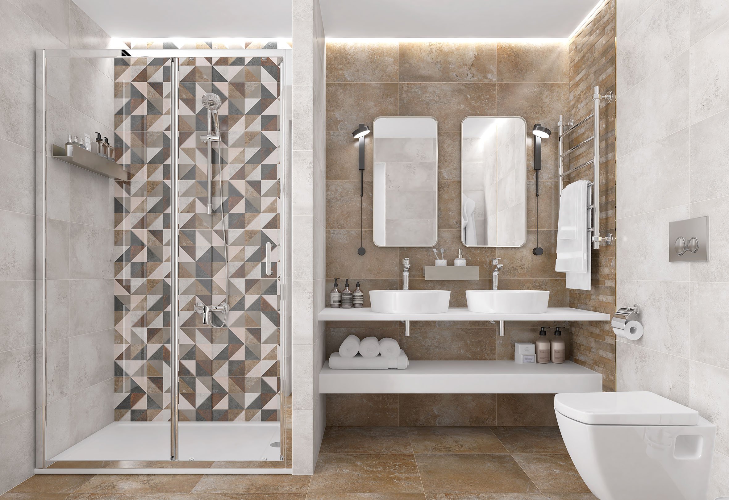 📝Просто оставить заявку в один клик. Все остальное мы сделаем за Вас! 🎨Мы нарисуем Дизайн-проект с 3D-визуализацией с раскладкой плитки и сантехникой |