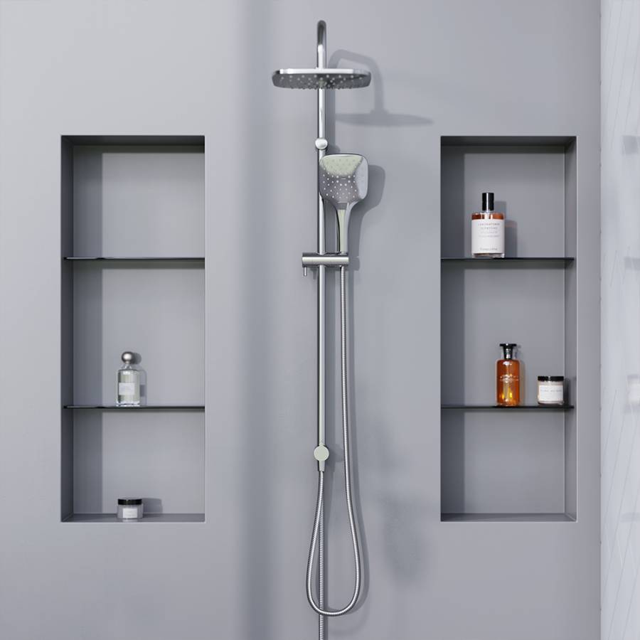 В комплекте идет ручной душ с новым рисунком форсунок который распределяет равномерно поток воды и увеличенный тропический душ. Удлиненная штанга позволит установить душ на нужной для вас высоте. Для полного расслабления душевая система имеет три режима ручного душа. Премиальные технологии еще не были никогДа настолько доступными.