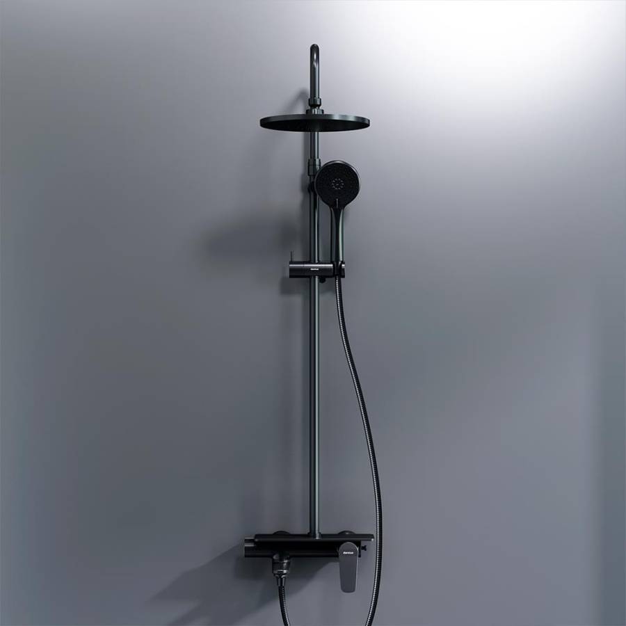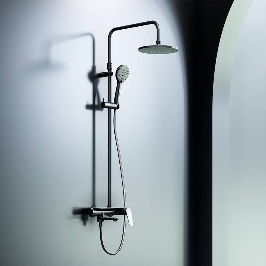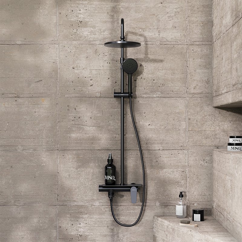 Глубокий матовый цвет дополнен покрытием High Gloss которое уберегает поверхность душевой системы от мелких повреждений. Приятно удивит многофункциональная полочка встроенная в смеситель для хранения нужных средств для ухоДа.