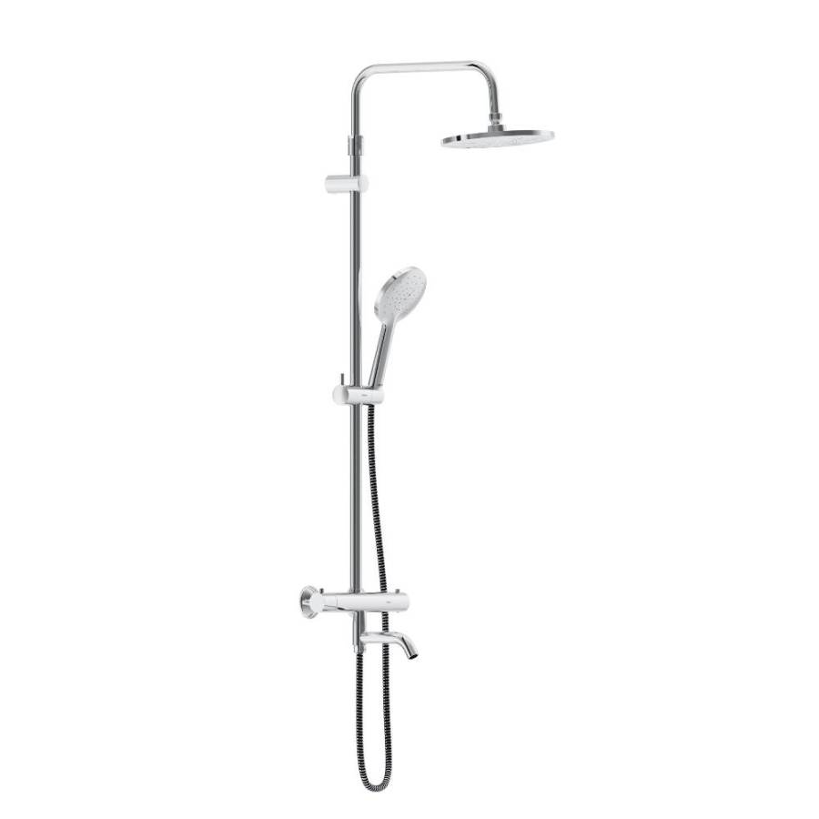 БлагоДаря телескопической штанге с диапазоном регулировки 400 мм ежедневные процедуры будут одинаково комфортны для людей любого роста. Большое количество форсунок с микроотверстиями которые распределяют поток мягкими равномерными струями обеспечит вам расслабляющий эффект настоящего домашнего SPA. Переключайте потоки воды между ручной и тропической лейками плавным поворотом дивертора а между смесителем и ручной лейкой - поворотом излива на 90 градусов. Угол наклона тропической лейки можно регулировать.