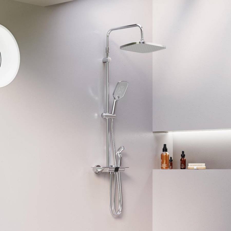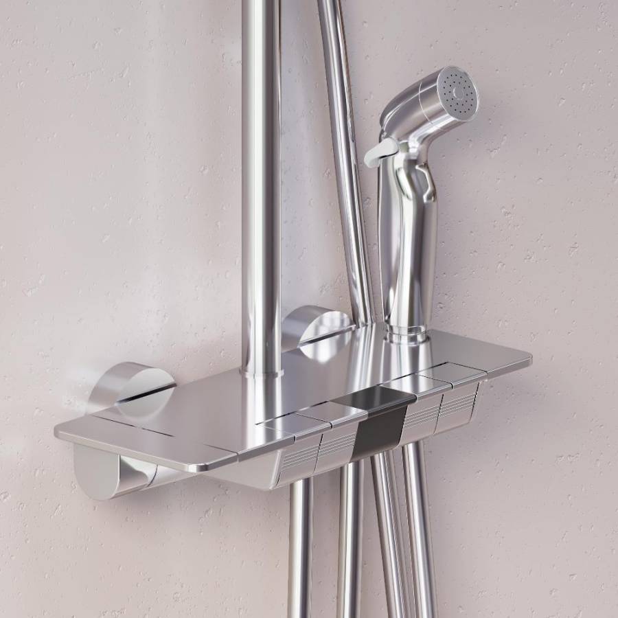 Максимальная безопасность и технологичность: термостатический картридж 35 мм обеспечивает точную настройку температуры и напора воды. Душевая система оснащена автоматическим дисплеем отражающим температуру воды в реальном времени. Непревзойдённый комфорт и удобство: тонкий латунный корпус выполнен в виде компактной полочки где вы можете хранить все необходимые вещи. БлагоДаря телескопической штанге с диапазоном регулировки в 400 мм водные процедуры будут одинаково комфортны абсолютно для всех членов семьи.