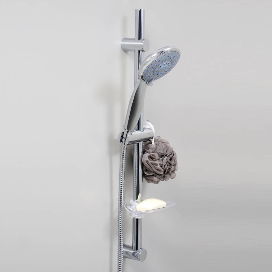 Лейка 5-функциональная с системой защиты от известковых отложений, Шланг металлический 1500 мм, подключение к лейке, Мыльница пластиковая, прозрачная, Регулируемый держатель лейки, Набор для монтажа |