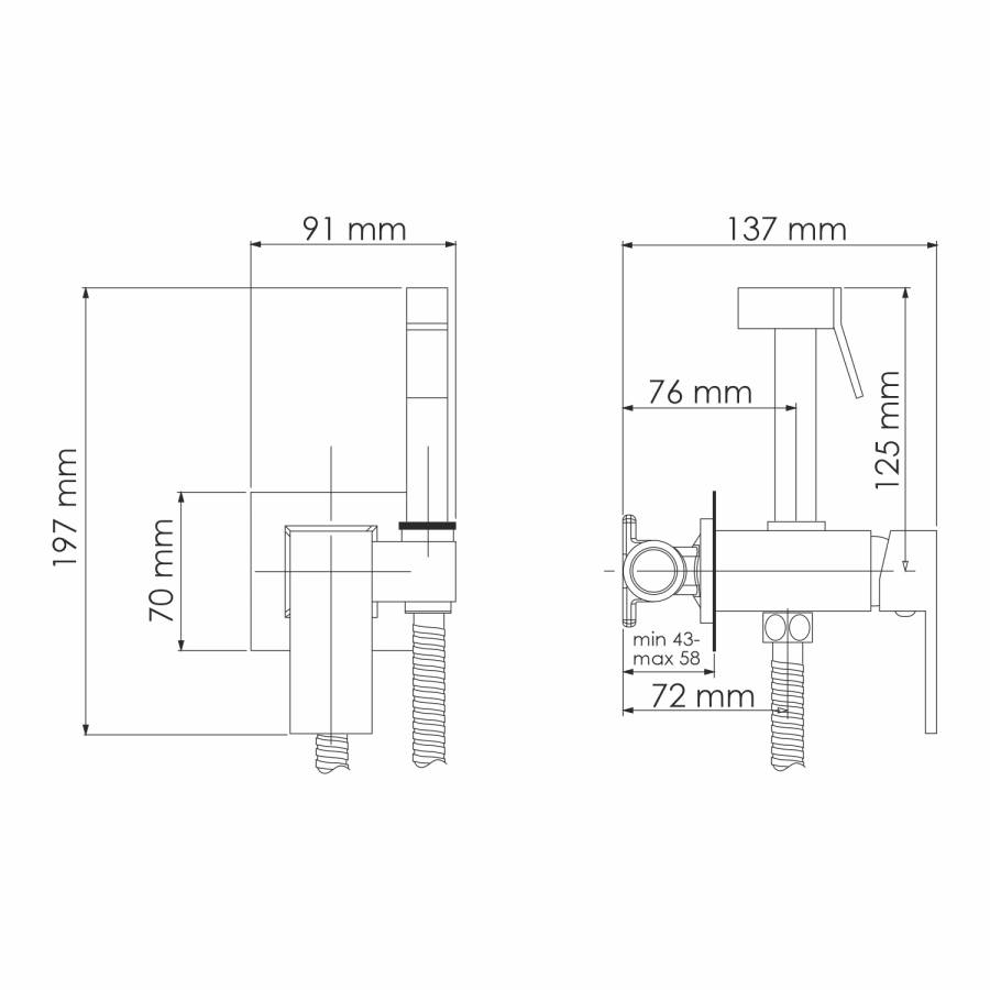 Металлический шланг 1200 мм, Гигиеническая лейка, Набор для монтажа |