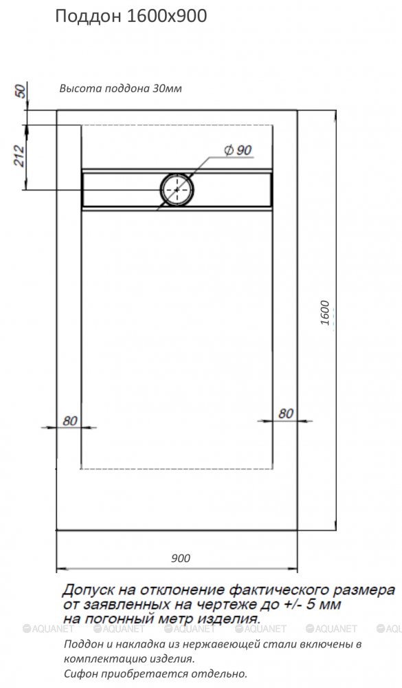 Поддон;Решетка слива из нержавеющей стали |