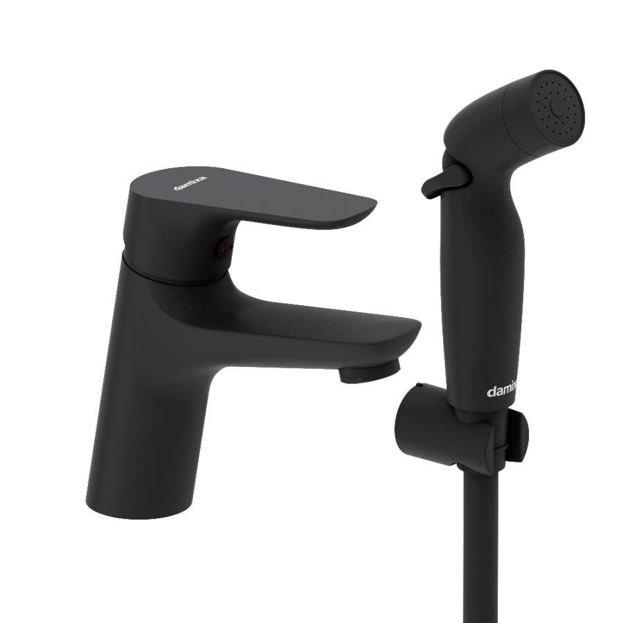 - С заботой о чистоте: к смесителю прилагается функциональный гигиенический душ.