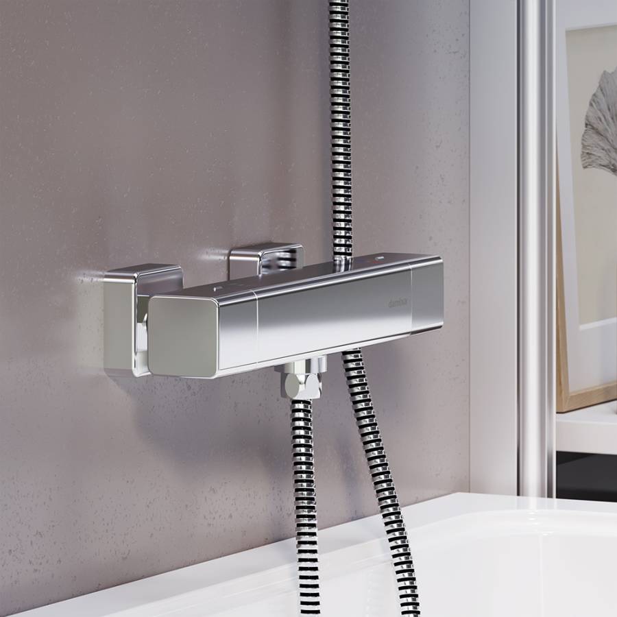 Максимальная безопасность: термостатический картридж 35мм обеспечивает точную настройку температуры и напора воды. Специальная кнопка-предохранитель не позволяет случайно повысить температуру воды. Выставляйте комфортные для вас параметры легким поворотом правой ручки смесителя. Переключайте потоки воды между лейкой и верхним душем поворотом левой ручки смесителя.