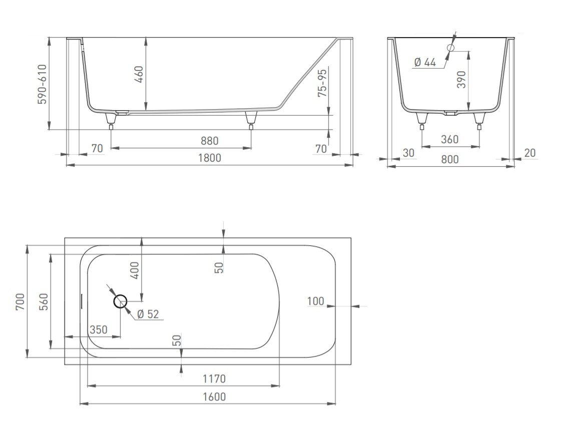 Ванна, регулируемые ножки до 2 см |