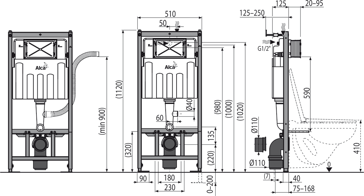 Подходит для установки пневматического или сенсорного смыва.