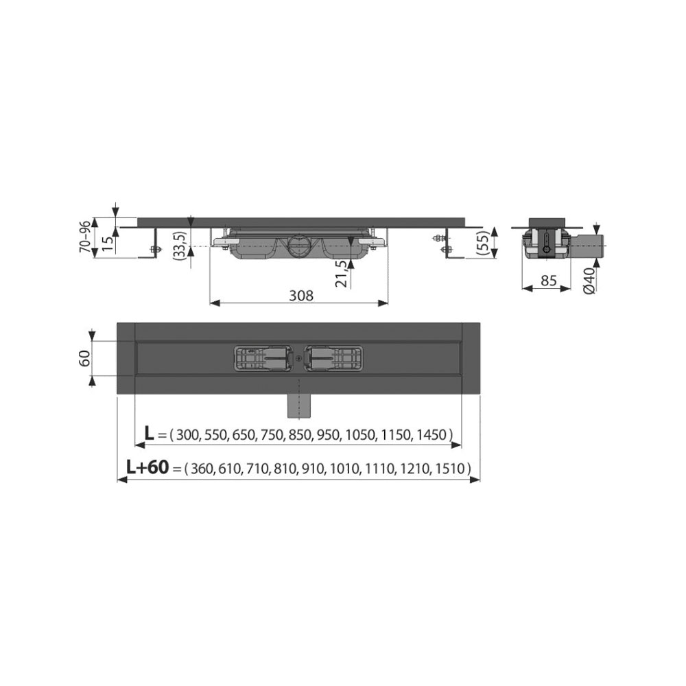 Водоотводящий желоб с сифоном; Монтажный комплект: шуруп Ø6×50 – 2 шт., дюбель Ø10 – 2 шт.; Самоклеящиеся гидроизоляционные ленты; Защитная пленка для воротника; Защитная пленка на вход в сифон; Монтажная крышка желоба - полистирол. |
