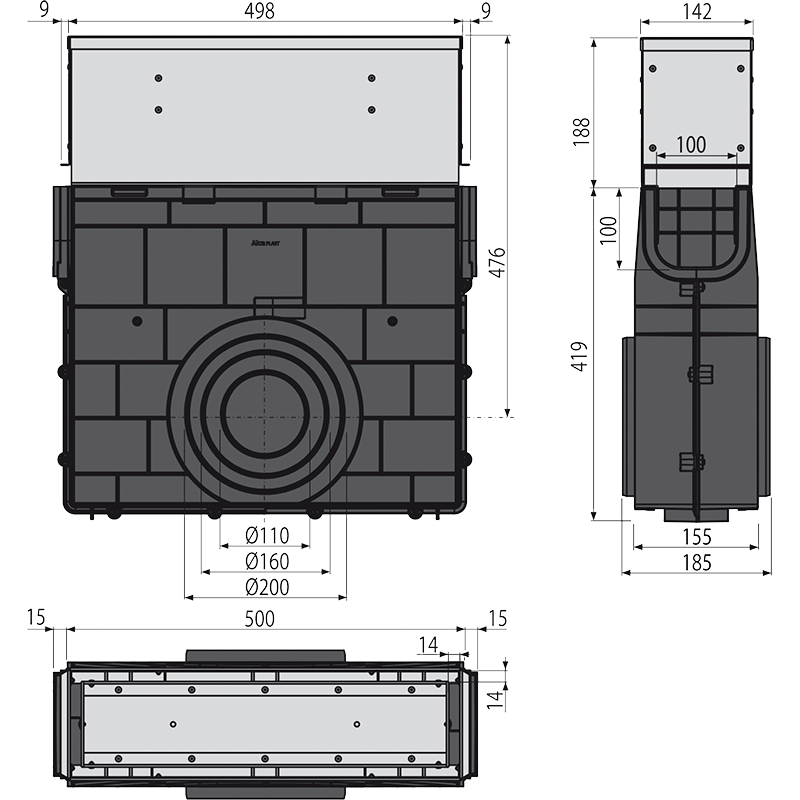 Корпус дренажного канала; Оцинкованная ревизионная надставка |