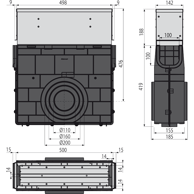 Корпус дренажного канала; Оцинкованная ревизионная надставка |