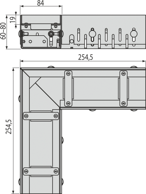 Тело желоба регулируется по высоте 60–80 мм;