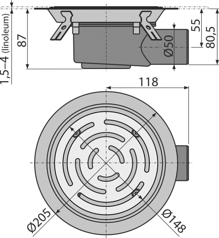 AlcaPlast APV3513 Душевой трап | комплект с дизайн-решёткой Ø 105 мм (нержавеющая сталь). Для внутренних помещений, где предполагается частое использование, связанное с регулярным сливом воды в канализацию (санузел) - сифон комбинированный. Для дренажа в виниловых полах. Для безбарьерного доступа. Круглая сетка Ø148 мм. Широкий изоляционный воротник для удобного монтажа укладочной гидроизоляции пола. Установка в виниловые полы. Боковое подключение к канализационному стоку Ø50 мм. Гидрозатвор препятствует проникновению запаха из канализации. Совместимость с другими составными частями сливного трапа, включительно мокрого, сухого и комбинированного гидрозатвора SMART. Материал: полипропилен, устойчивый к механическим, химическим и термическим повреждениям. Материал: нержавеющая сталь AISI 304, DIN 1.4301.