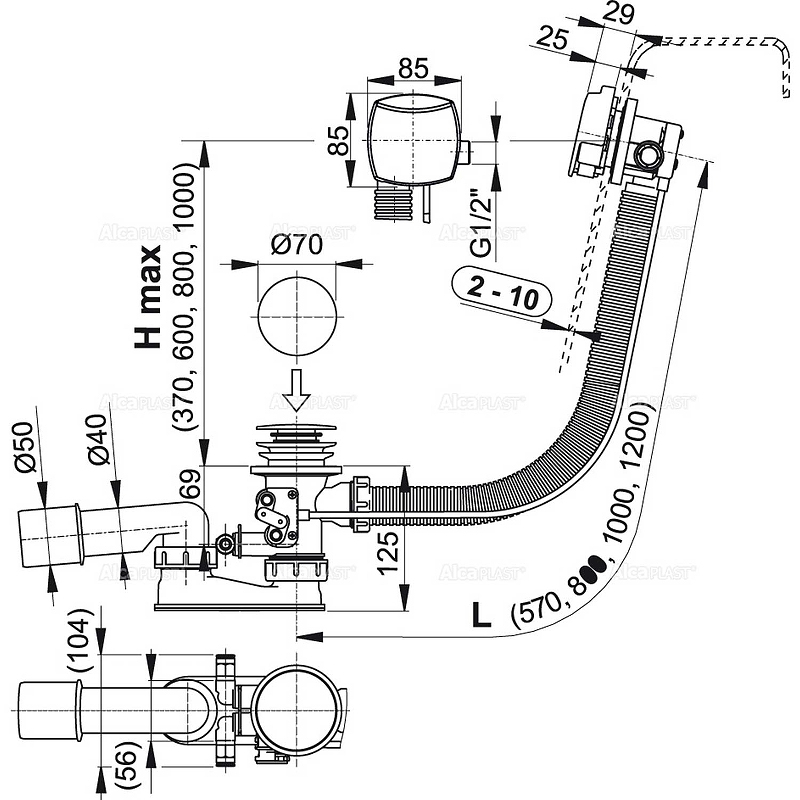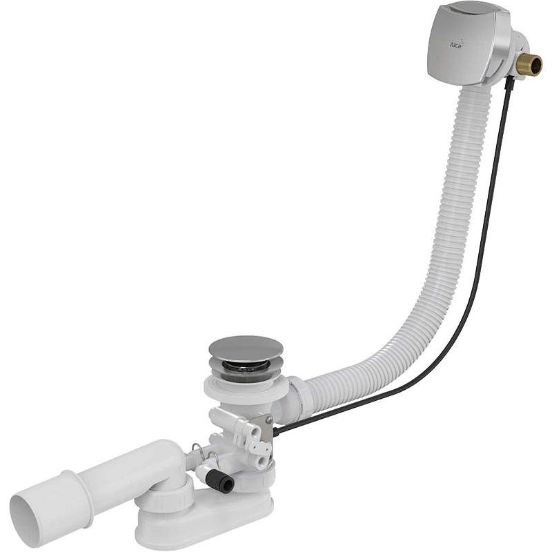 Слив-перелив система с функцией наполнения ванны; Корпус сифона с переливом-напуском и механизмом для слива воды из гидромассажной системы (ГМС); Быстросъемное соединение для подключения ГМС 2 шт.; Поворотная стальная накладка, хромированная; Хромированная стальная пробка; Хромированная решетка слива из латуни; Гидрозатвор сифона из полипропилена, сваренный ультразвуковым методом, устойчив к термическим и химическим воздействиям; Монтажный комплект; Профильное уплотнение. |