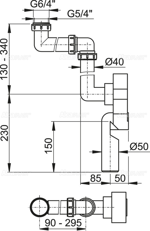 Корпус сифона встроенного в стену - 1 шт. Трубы для подключения к раковине или мойке -1 шт. Обрамление: пластик - 1 шт. Резьбовое соединение 5/4", 6/4" для подключения слива раковины или мойки - 1 шт. Инструкция - 1 шт. |