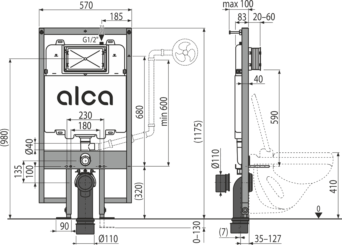 Бачок с впускным и выпускным механизмом. Самонесущая рама. Резьбовое соединение 1/2" для подвода воды со встроенным угловым вентилем Schell 1/2"–3/8". Монтажный комплект: винт Ø8×60 – 8 шт., дюбель Ø12 – 8 шт.. Монтажный комплект для крепления унитаза: шпилька М12 – 2 шт., шайба – 4 шт., колпачок – 2 шт., гайка – 2 шт., гофрированный рукав – 2 шт.. Стоковое колено SLIM Ø90/110. Прокладка, патрубок полипропилен, манжета. Прокладка, патрубок полипропилен, уплотнение патрубка. Монтажный комплект крышек для защиты технических отверстий при установке системы. Рукав сервисного отверстия двусоставный, легко укорачивается. |