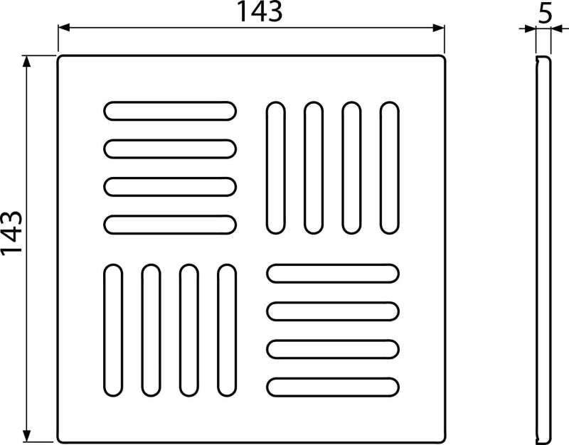 Массивная нержавеющая решетка 143x143x5 мм.
