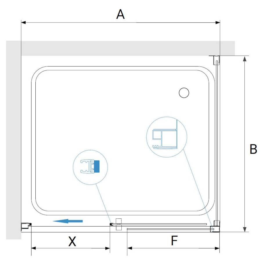 Конструкция дверей душевого уголка раздвижная, что позволяет сэкономить место в ванной комнате и легко управлять дверями. Это удобно и практично в эксплуатации.