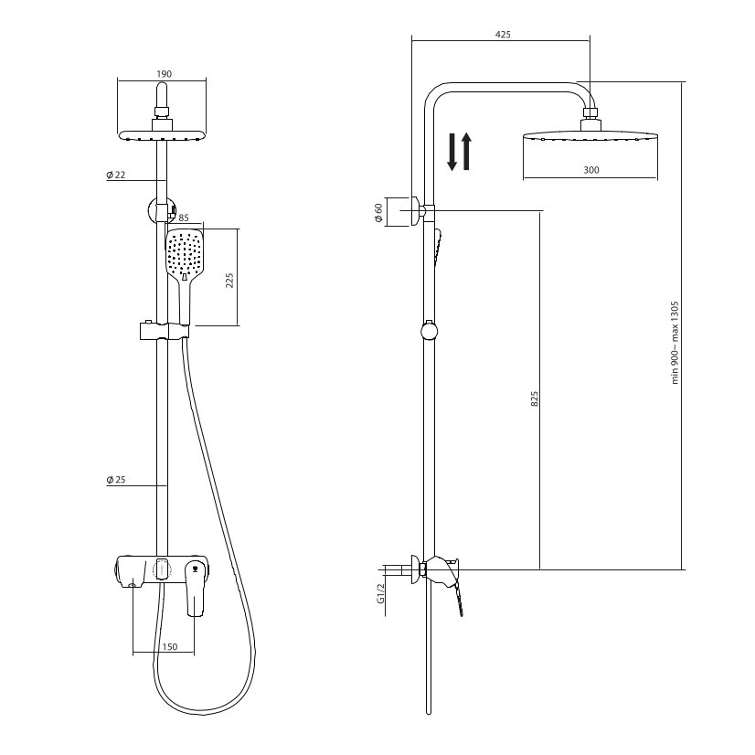 Размер верхнего душа мм.