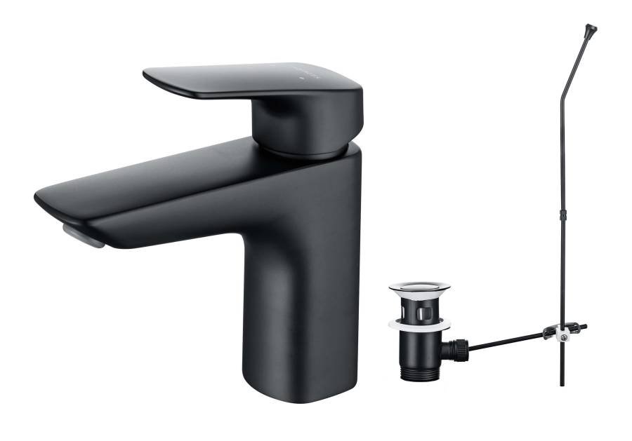 1. Смеситель 2. Гибкая подводка 50см 3. Монтажный комплект 4. Донный клапан |