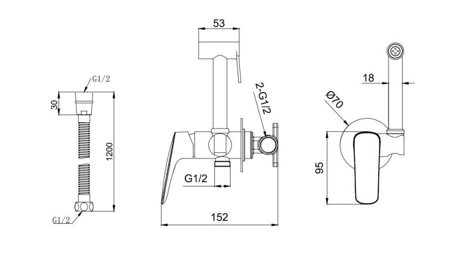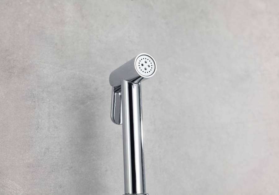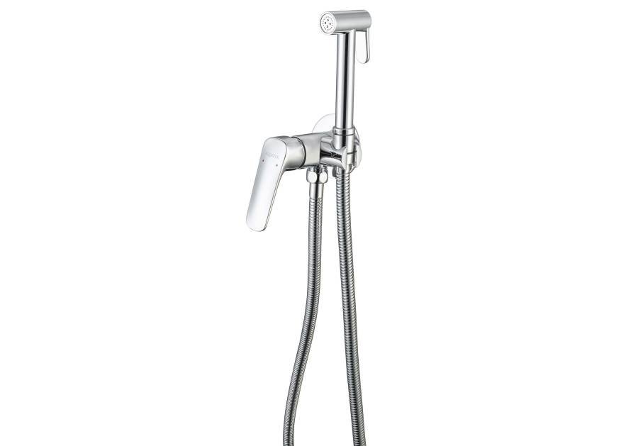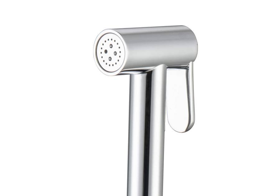 1. Смеситель 2. Шланг для лейки 120 см 3. Гигиеническая лейка оснащена нажимным механизмом для остановки потока воды 4. Декоративная накладка/отражатель из нержавеющей стали 5. Монтажный комплект |