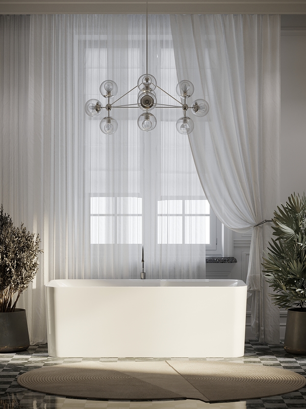 Ванна с экраном, алюминиевая рама, слив-перелив интегрированный, донный клапан "Click-Clack", сифон |